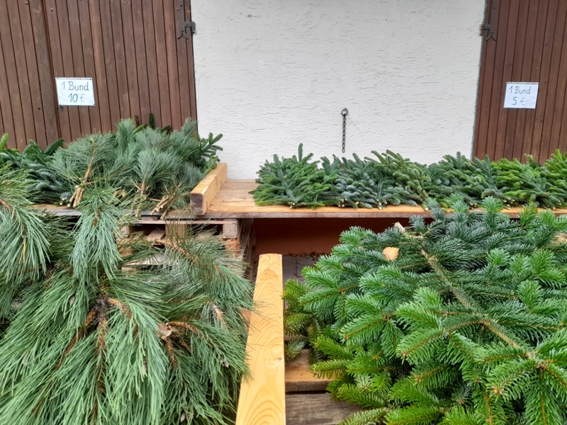 Der Kunde hat eine große Auswahl an Nordmanntannen ab 10 €, 19, € 29 €, 45 € und Premiumbäumen, sowie laufend frischen Tannen- und Kiefernzweigen. Außerdem besteht ein großes Angebot an hohen Bäumen (3 bis 5 m).